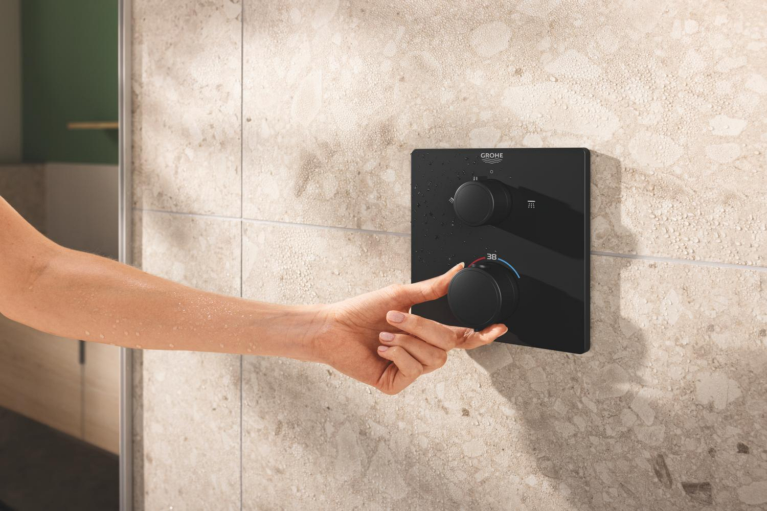 Set sistem de dus Grohe Precision Cube, incastrat, termostat, diverter, dus patrat, 1 jet, corp instalare inclus, negru