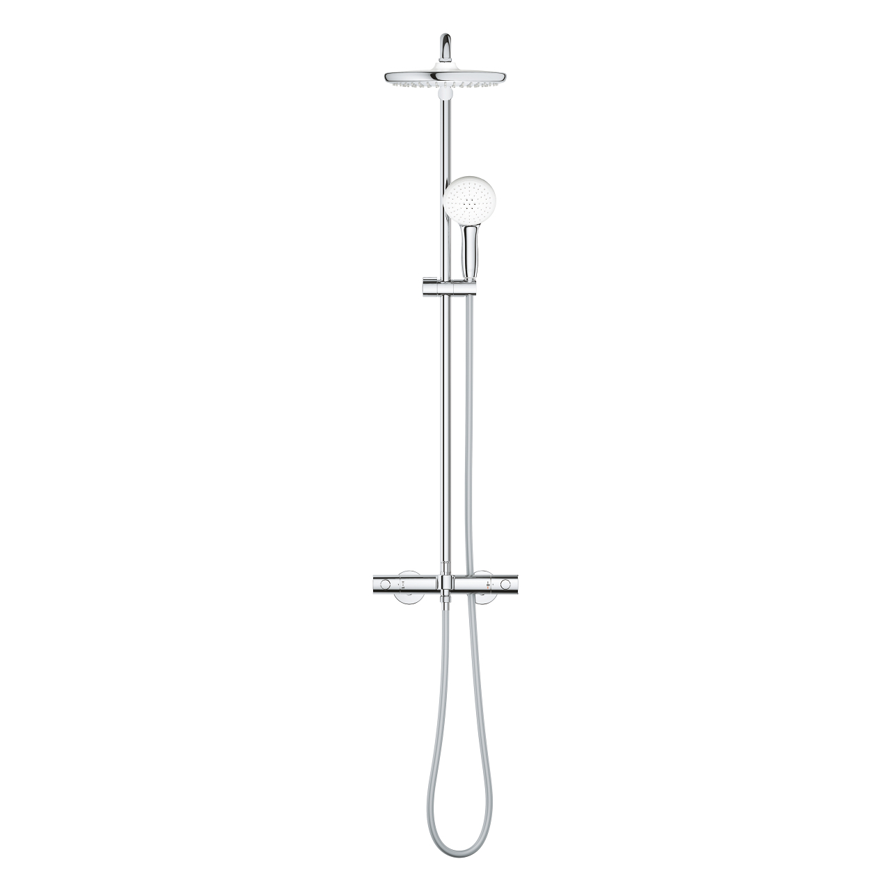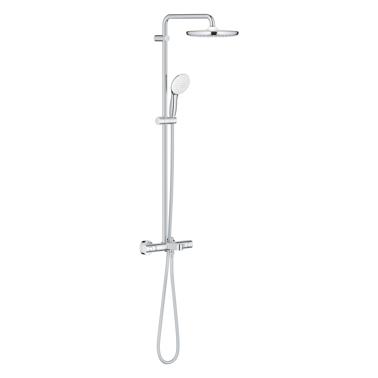 Transformați fiecare duș într-o experiență de neuitat cu sistemul de duș Grohe, care îmbină eleganța modernă cu funcționalitatea excelentă. Acest sistem sofisticat, cu un design aparent, aduce un aer de rafinament în fiecare baie, fiind perfect pentru cei care apreciază atât estetică, cât și performanță. Para de duș generos dimensionată de 250 mm asigură o acoperire optimă, oferind o dușoare plăcută și revigorantă, ideală pentru a înviora diminețile sau a relaxa după o zi lungă.