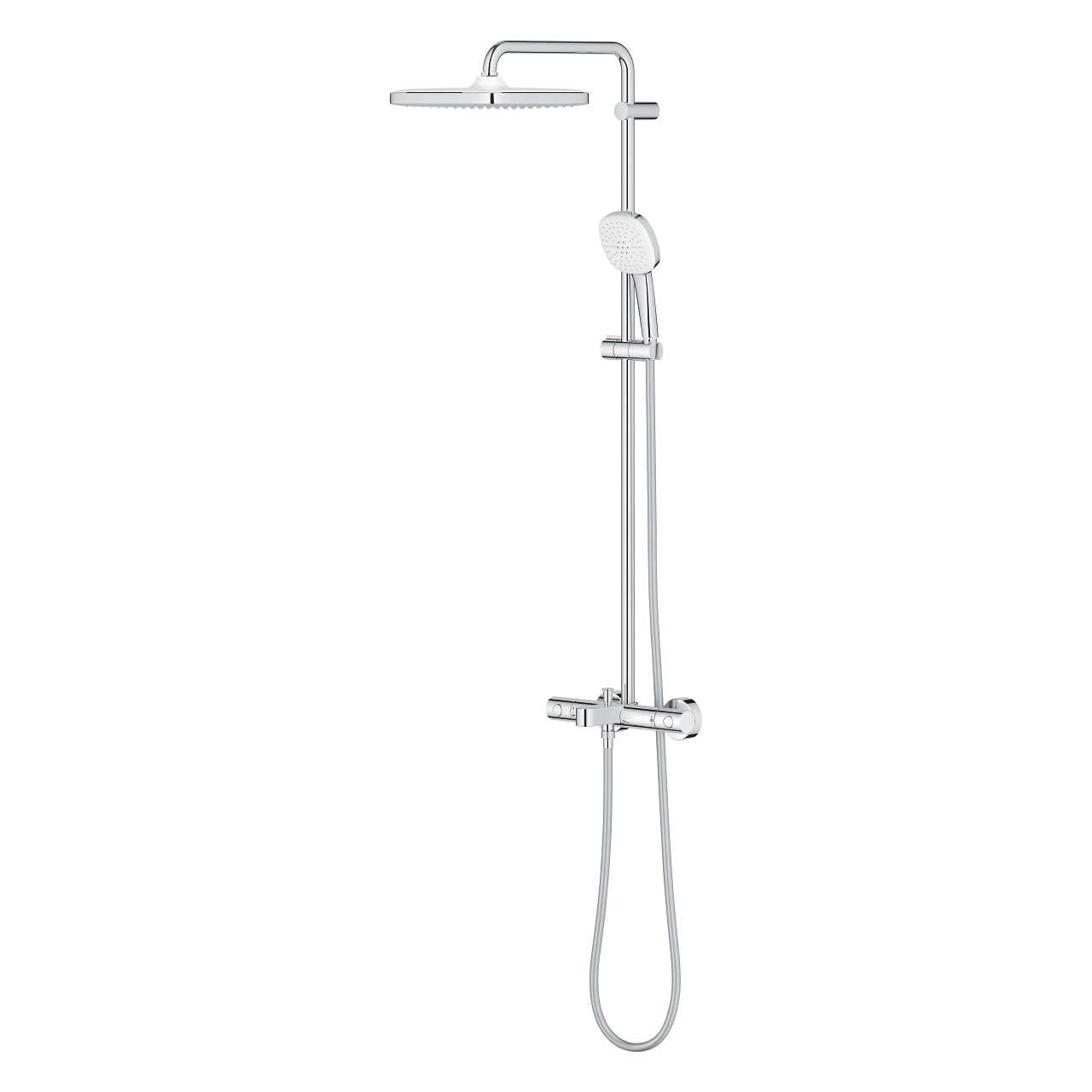 Descoperă confortul și eleganța oferite de sistemul de duș de la Grohe, un produs care îmbină tehnologia avansată cu un design modern, destinat să transforme fiecare baie într-un sanctuar de relaxare. Cu un cap de duș de 250 mm, acesta asigură o acoperire optimă, oferind o experiență plăcută și revigorantă, perfectă pentru a te destinde după o zi lungă. Materialele de calitate superioară și finisajul cromat nu doar că adaugă un plus estetic, dar asigură și o durabilitate remarcabilă, rezistând cu brio timpului și utilizării intense.