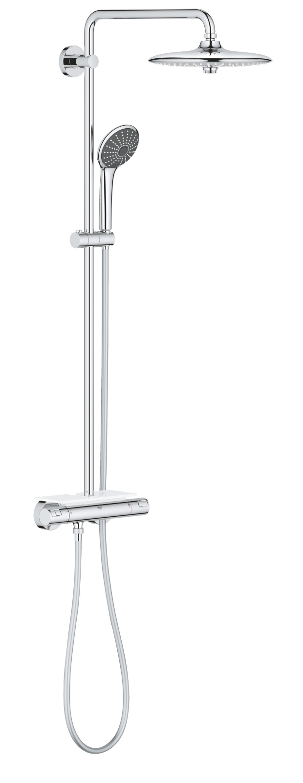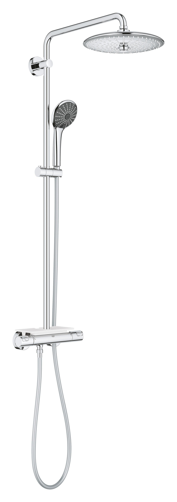 Transformați fiecare duș într-o experiență de neuitat cu sistemul de duș de la Grohe, un exemplu de excelență în designul sanitar. Conceput pentru a satisface cele mai exigente gusturi, acest sistem de duș combină funcționalitatea cu estetica modernă, având un finisaj elegant din crom care adaugă un plus de strălucire băii dumneavoastră. Fie că doriți să vă relaxați după o zi lungă sau să vă revitalizați dimineața, fiecare picătură de apă va fi o plăcere.