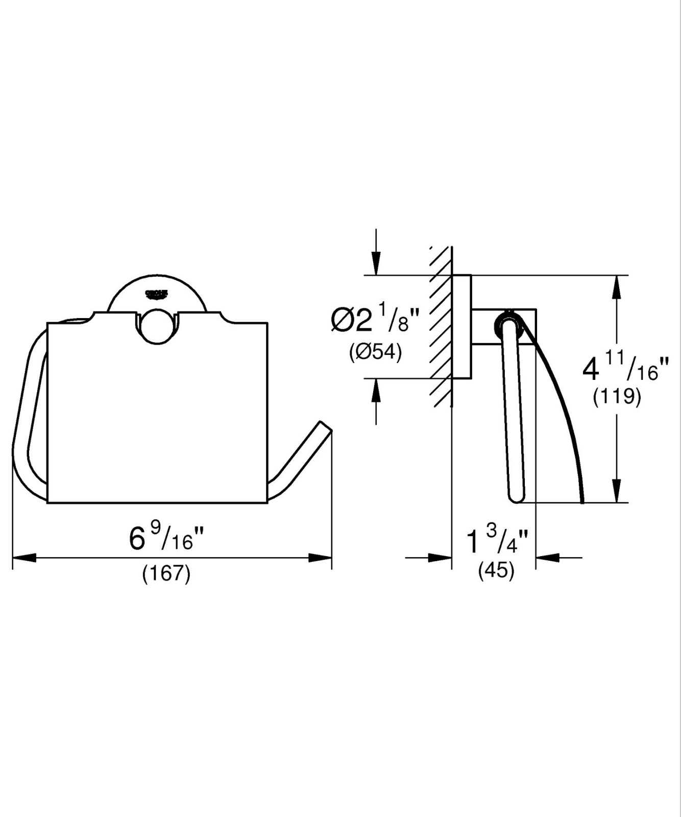 Suport hartie igienica Grohe Start cu capac, montare pe perete, fixare ascunsa, cu aparatoare, crom mat