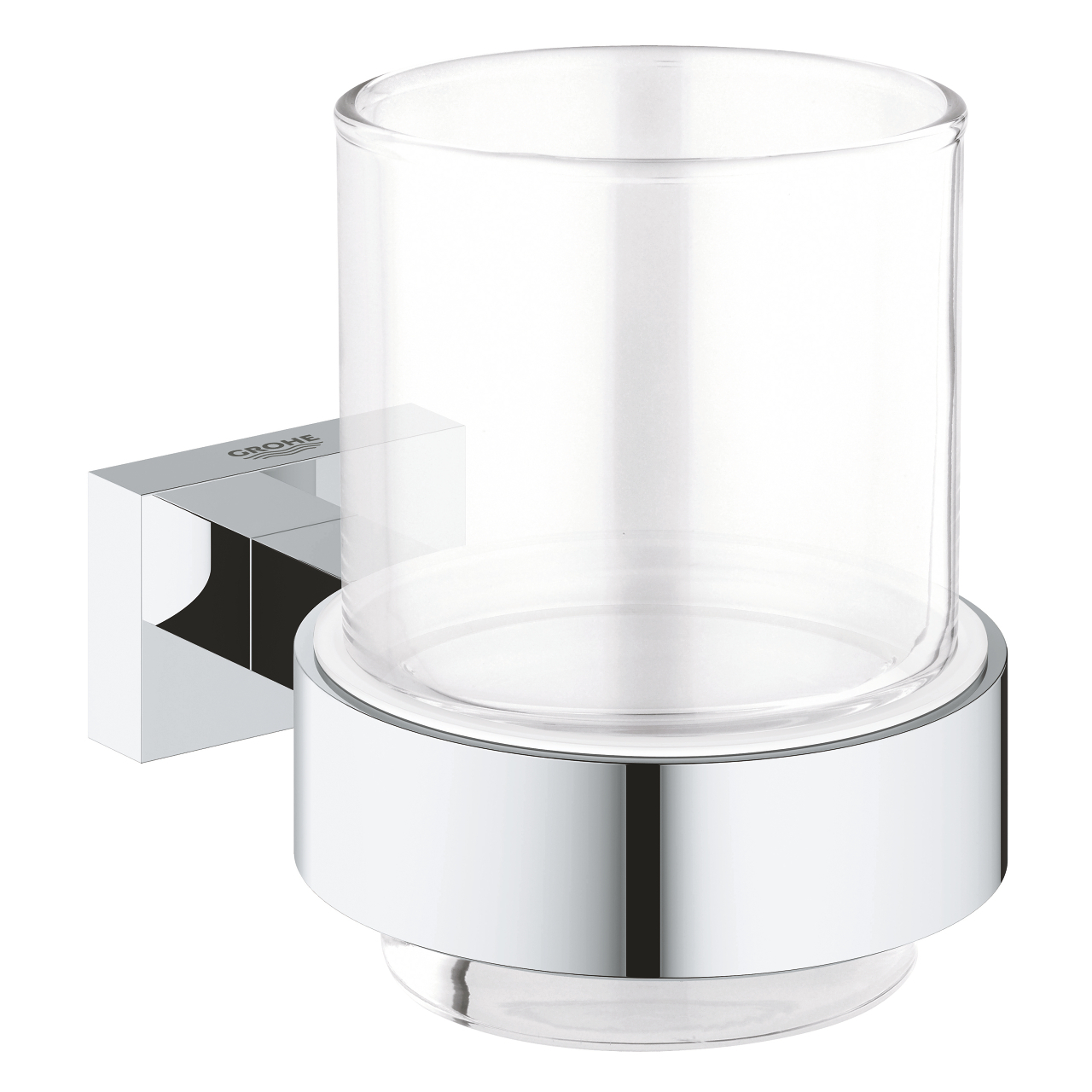 Suport pahar Grohe Essentials Cube sticla cu suport, montare pe perete, elemente fixare ascunse, crom