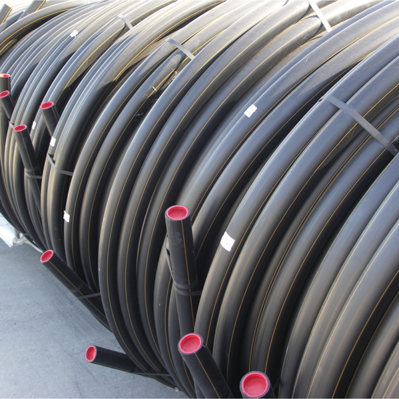 tevile (GasKIT) din PE100 SDR11 se utilizeaza in retele exterioare de transport gaze naturale cu presiunea maxima de utilizarea MOP=10 bari (temperatura de referinta 20C). tevile se monteaza ingroinglobare in pamant. Tevile sunt produse din polietilena de inalta densitate tip PE100. Materia prima este un amestec omogen de polietilena, antioxidanti, pigmenti si stabilizatori fata de actiunea radiatiei UV. tevile sunt de culoare neagra si au dungi, coextrudate longitudinal, de culoare galbena. Diametrele exterioare medii, abaterea de la circularitate (ovalitatea) si tolerantele sevilor sunt conform cu SR EN 1555-2:2011. Grosimea de perete si tolerantele la grosime a tevilor respecta cerintele din SR EN 1555-2:2011.