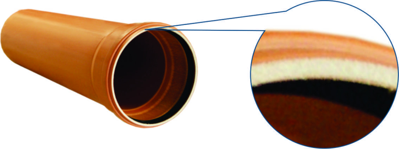 Tuburile au un strat intermediar de PP expandat situat intre un strat exterior si un strat interior din material PP compact. Tuburile sunt fabricate prin co-extrudare.