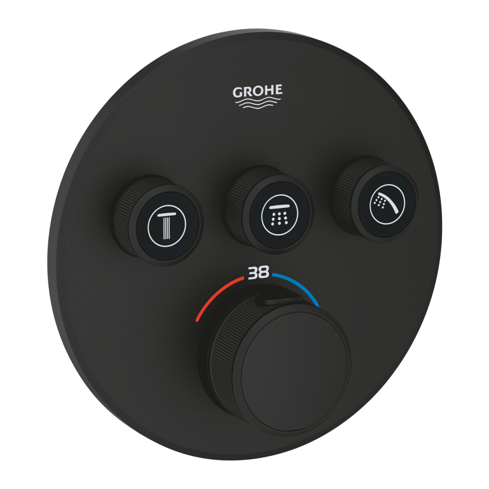 Unitate control Grohe Grohtherm SmartControl incastrata, rotunda, 3 iesiri, tripla comanda, cartus ceramic, termostat, diverter, limitator temperatura, necesita corp instalare, negru