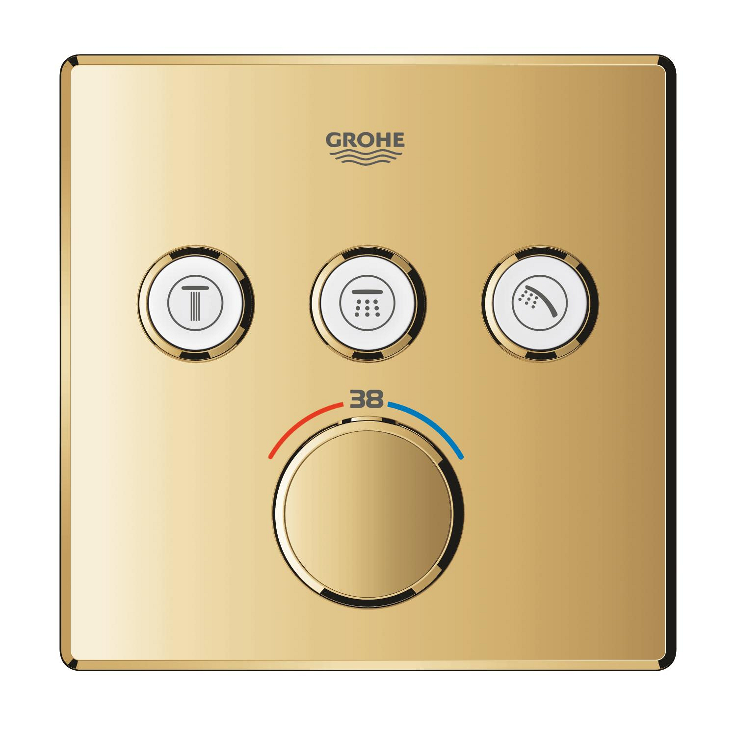 Unitate control Grohe Grohtherm SmartControl cu termostat, safestop, 3 iesiri, necesita corp instalare, auriu lucios
