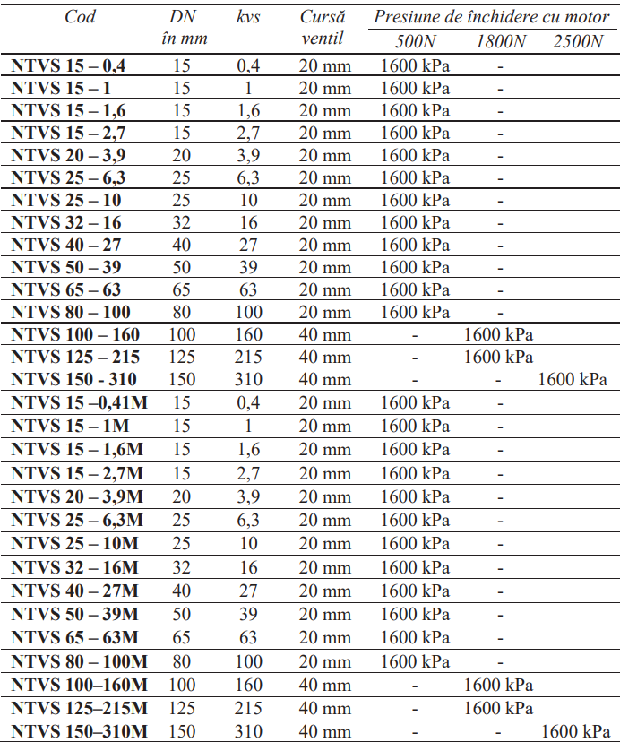 · Datorită sistemului de închidere echilibrat ventilele necesită un servomotor cu putere mică pentru a realiza o presiune de închidere maximă de 16 bar.