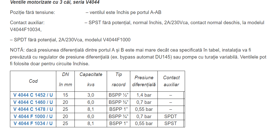 Ventile cu resort arc și comandă pe 2 fire pentru control de zonă, pompe de căldură, separare circuite de încălzire, ventilo-convectoare cu debite mari. Doar pentru circuite închise.