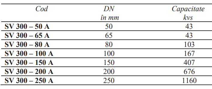 · SV300 sunt controlate de un debit mediu care trece prin ventilul pilot.
