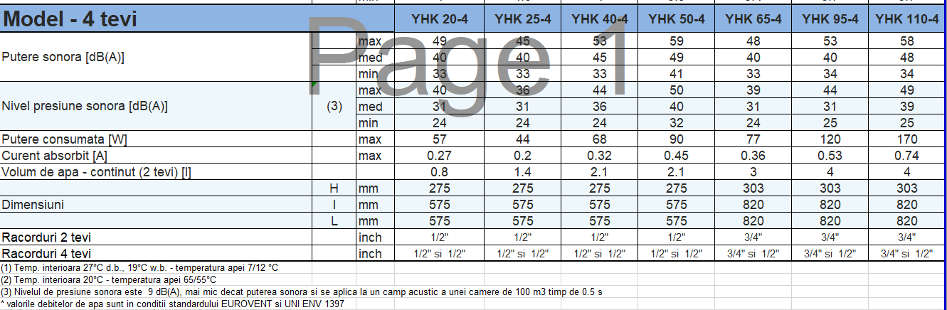 | Puterea de incalzire 4 tevi [kW] | (2) | max | 8.02 | 9.66 | 11.16 |